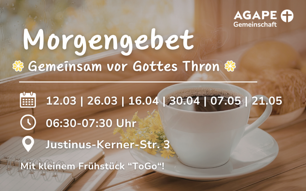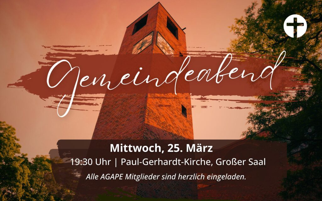 AGAPE ist eine überkonfessionelle christliche Gemeinschaft. Der Name ist für uns Programm. AGAPE (griech.) bedeutet „Liebe Gottes“. Gemeinsam wollen wir diese Liebe entdecken und sie weitergeben. Wenn du das erleben willst, bist du genau richtig bei der AGAPE Gemeinschaft. Du bist herzlich eingeladen zum Gottesdienst!