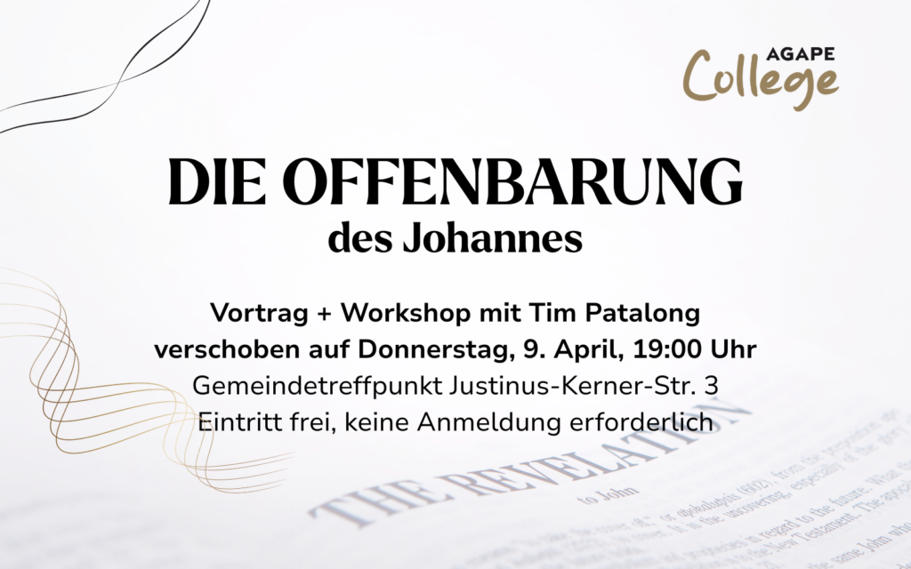 Dann abonniere unseren News Kanal. Einmal pro Woche senden wir eine kurze Nachricht mit wichtigen Neuigkeiten & bevorstehenden Veranstaltungen – bei AGAPE, aber auch andere christliche Events im Raum München. Bleib am Ball!