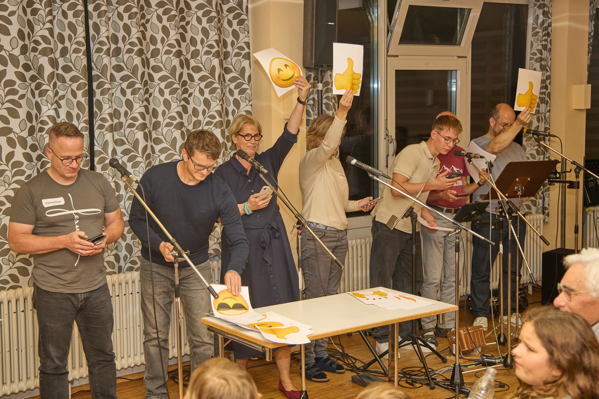Gerade um Personen kennenzulernen, die man bisher nur flüchtig oder gar nicht kennt, hatte Markus Hartel ein Spiel für die ganze Gemeinde vorbereitet, innerhalb dessen Gruppen am Samstag ab 16:00 Uhr verschiedene gemeinsame Aufgaben bewältigen mussten, und dabei Stärken und Eigenarten der einzelnen Personen entdeckten, aber auch viel lachten!